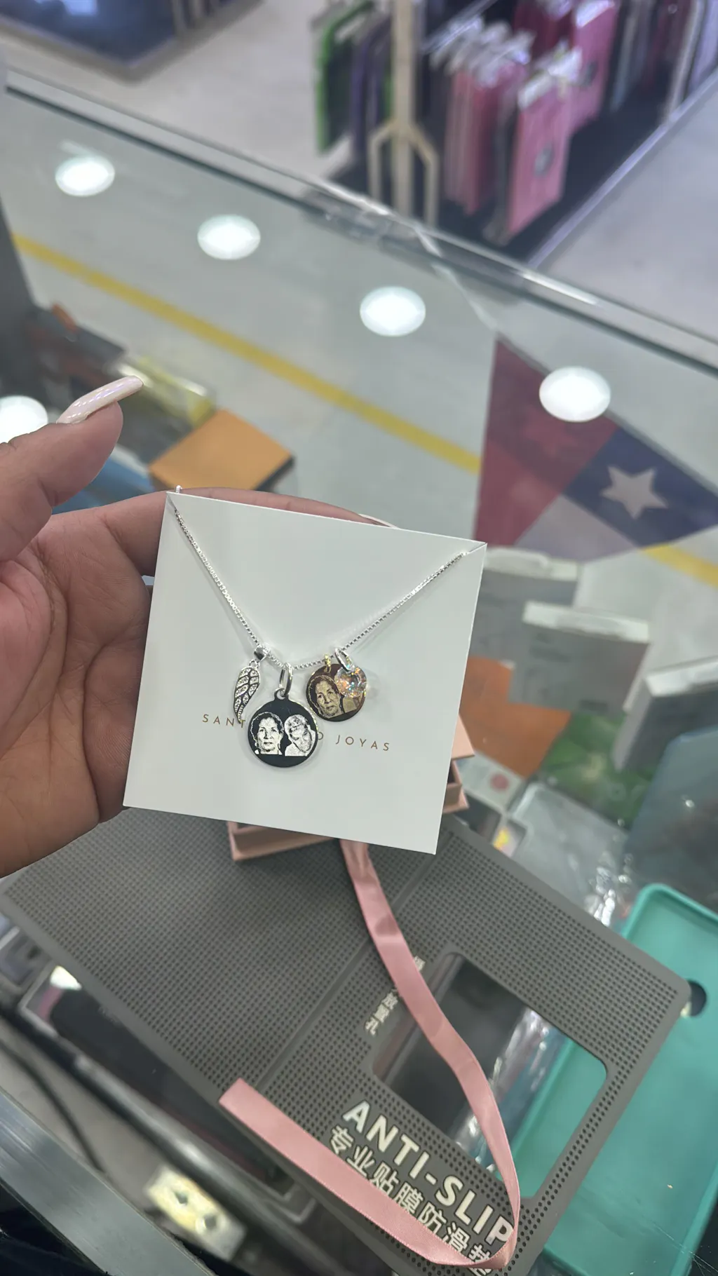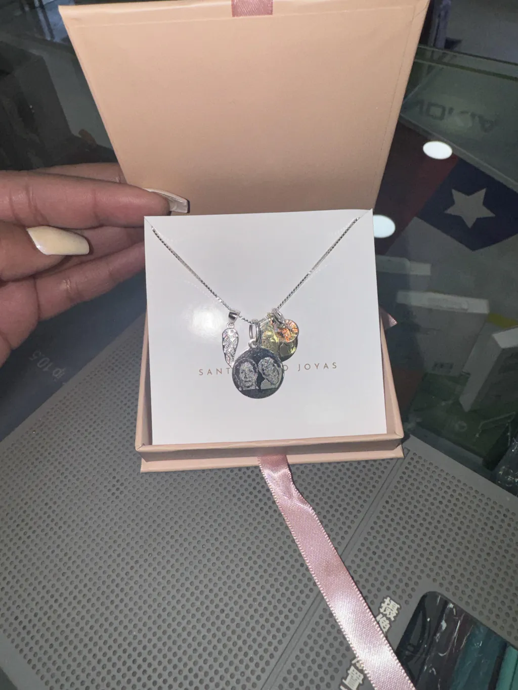 Hermoso collar con trabajo de fotograbado, donde puedes llevar a tus seres amados a una linda joya.