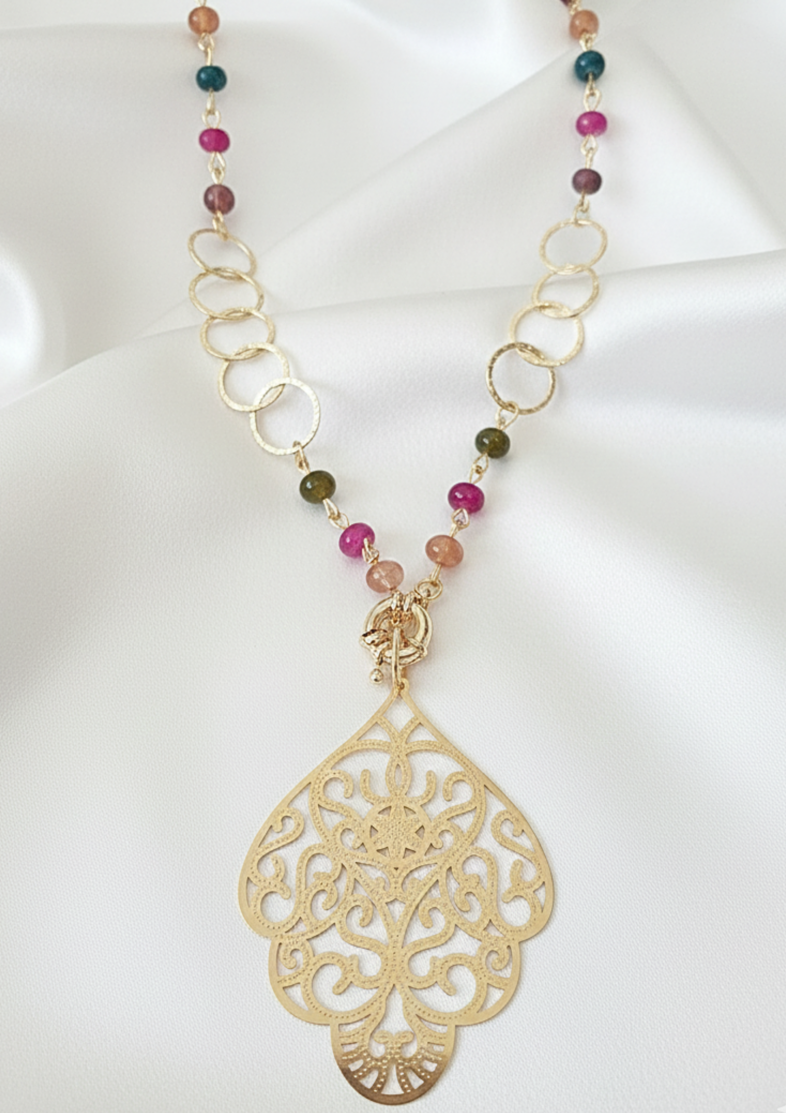 • Collar de turmalinas naturales y baño de 6 micras de oro 24 kilates