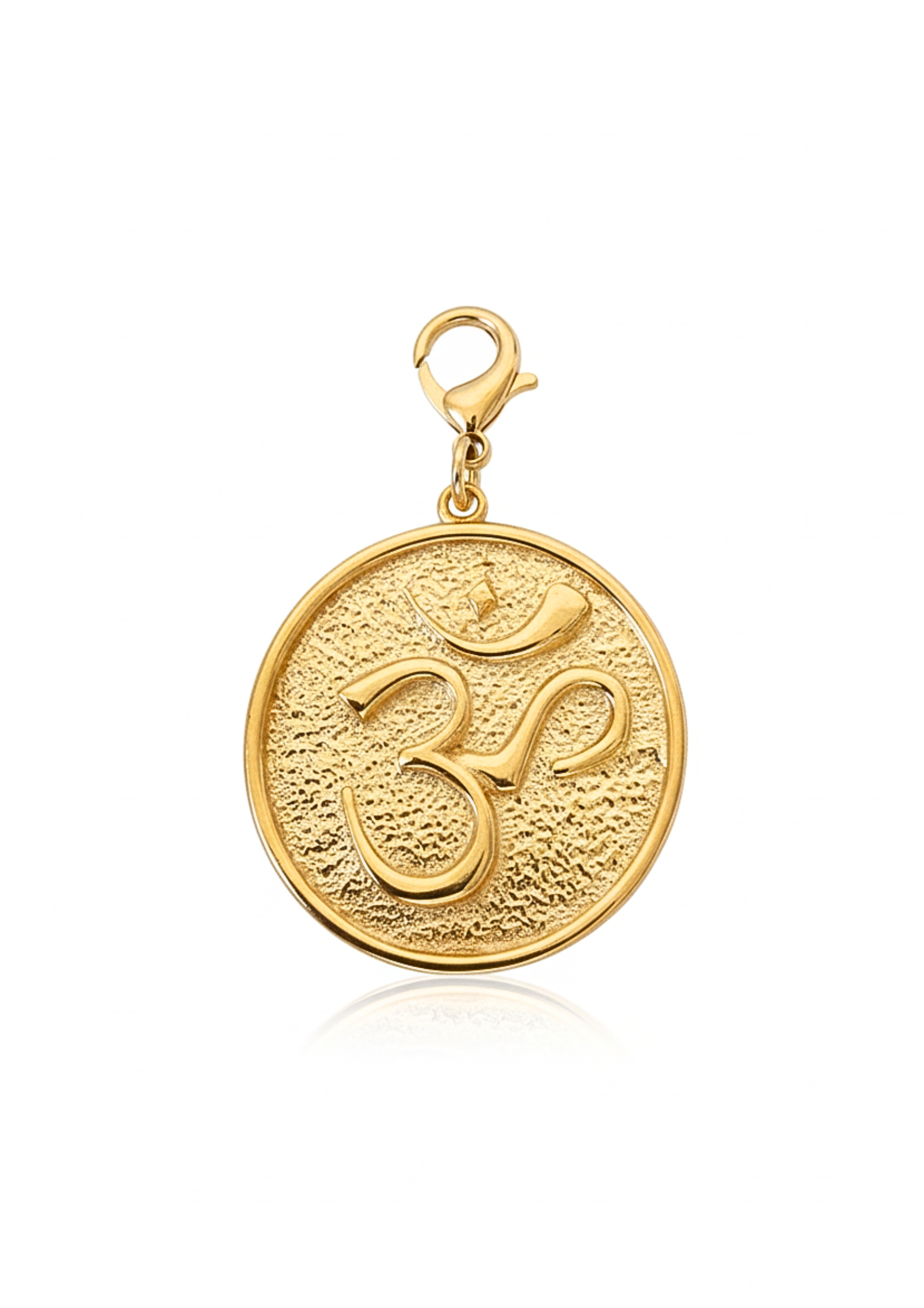 La Medalla Sagrado OM es un símbolo de conexión espiritual y armonía interior. Representa el sonido primordial del universo, la energía que une cuerpo, mente y espíritu. Su diseño en relieve, bañado en oro brillante y con textura artesanal, transmite fuerza y calma a la vez.